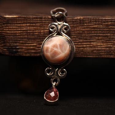 Pink Natrolite, Tourmaline Pendant