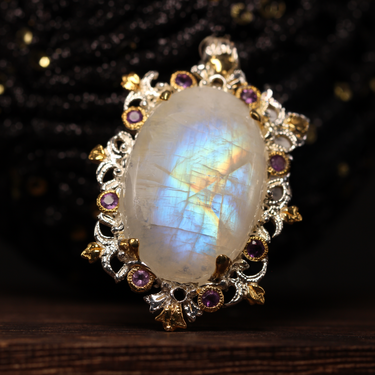 Rainbow Moonstone, Amethyst Pendant