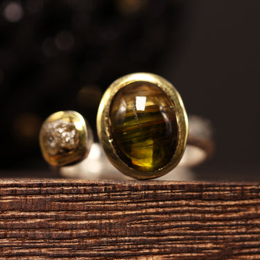 Yellow Phantom Tourmaline & Diamond Ring
