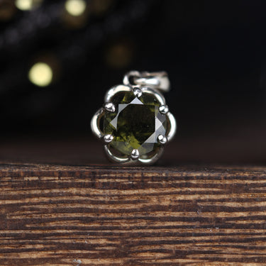 Moldavite Round Flower Pendant
